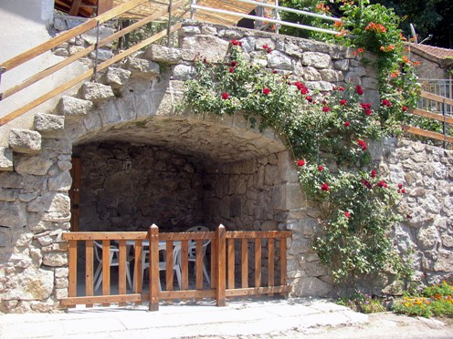 De la cuisine, vous pourrez accéder à droite, à une jolie terrasse voûtée avec un salon de jardin et barbecue ;