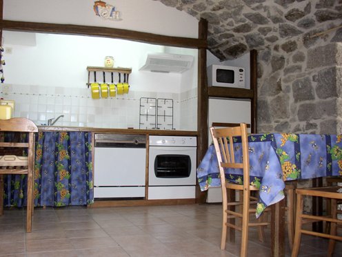 La cuisine est entièrement équipée: réfrigérateur, cuisinière, micro-onde, lave-vaisselle, couverts, casseroles...